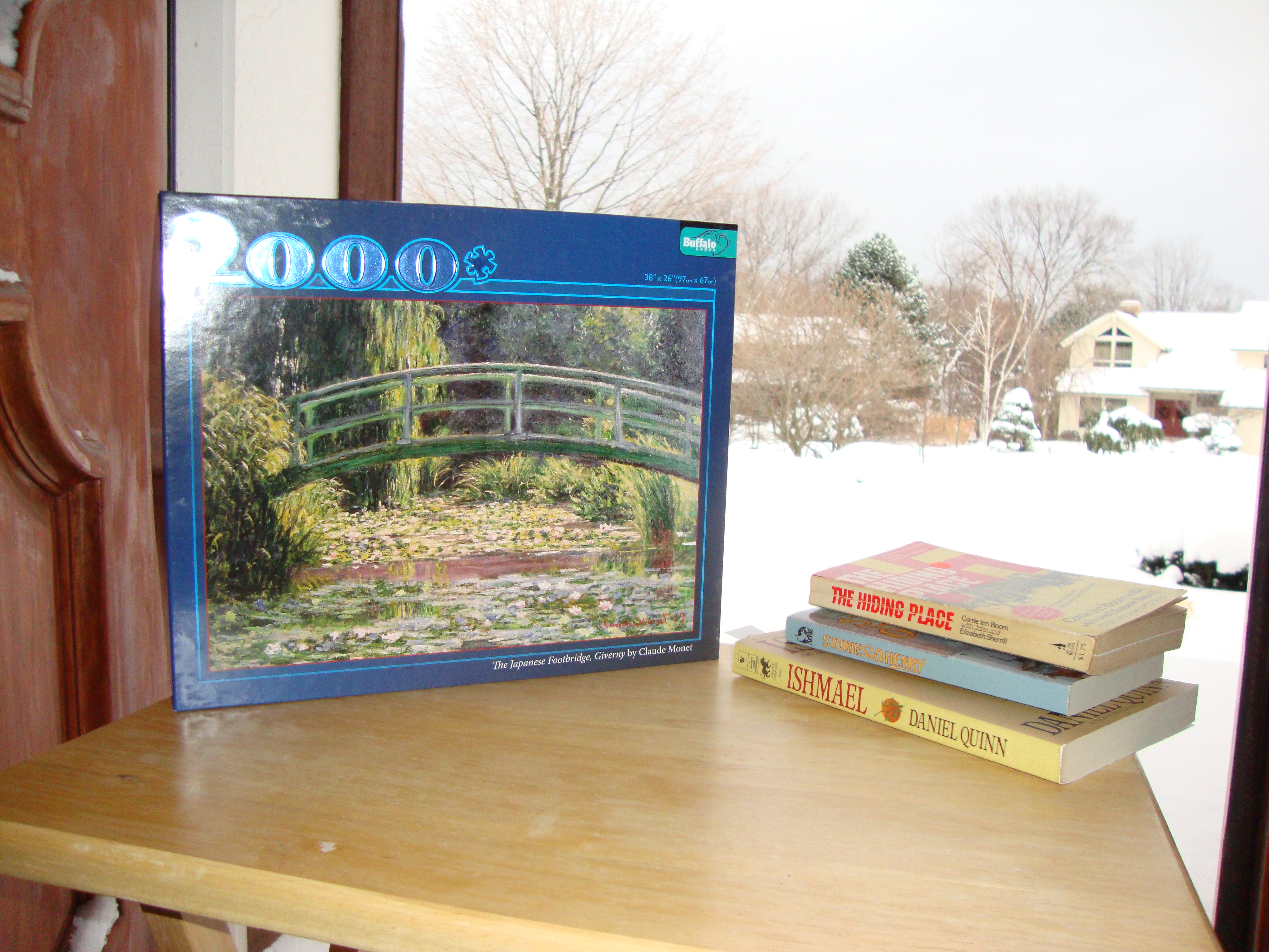 1. The Japanese Footbridge, Giverny by Claude Monet. 2000 pieces. 38″ x 26″. It’s been put together once (by me). for Charity