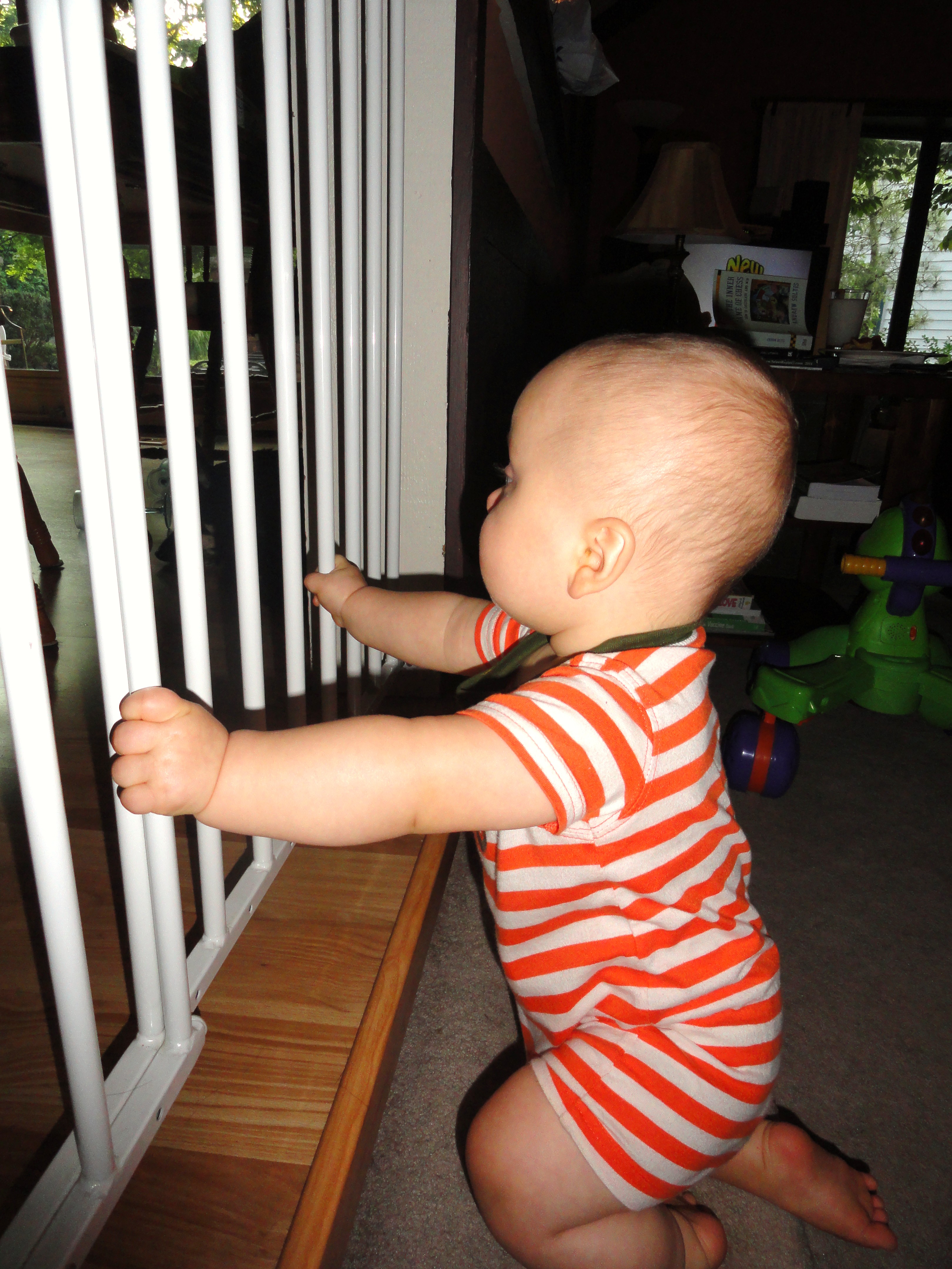 He falls down. A lot. But at least not off this step so far 🙂 Welcome to the crazy train. I’ve had a lot less time at the computer this week for very good reason !