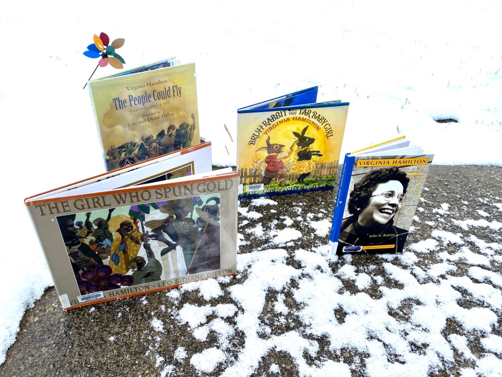 I read the last Virginia Hamilton book I have checked out of the library, Her Stories: African American Folktales, Fairy Tales, and True Tales, illustrated by Leo & Diane Dillon. If you are reading your children fairy tales, please make sure you add a Hamilton book or two to your list. These are so rich in history, which she does a great job of explaining in a paragraph or two at the end of each chapter, and so different that every child should be to exposed to them. Obviously, when they are of fairy tale age, but also at the time that slavery is introduced in their learning. These stories were passed down from slaves and Virginia makes them easier to read and understand.